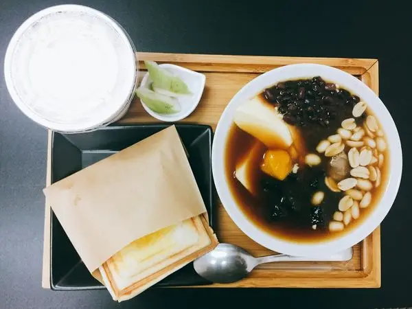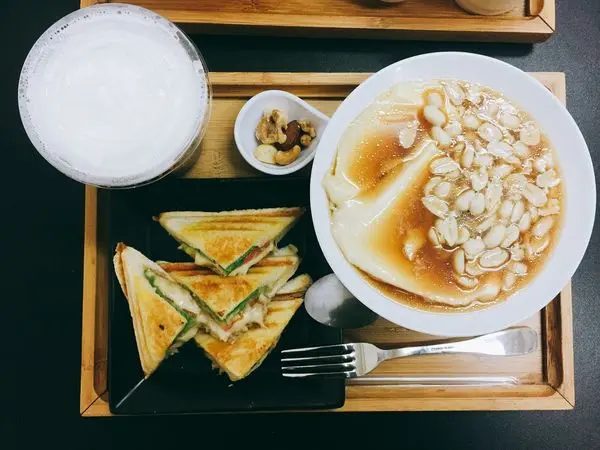 MIX綜豆花(H)+半熟起司蛋熱壓吐司+醇濃豆漿$95