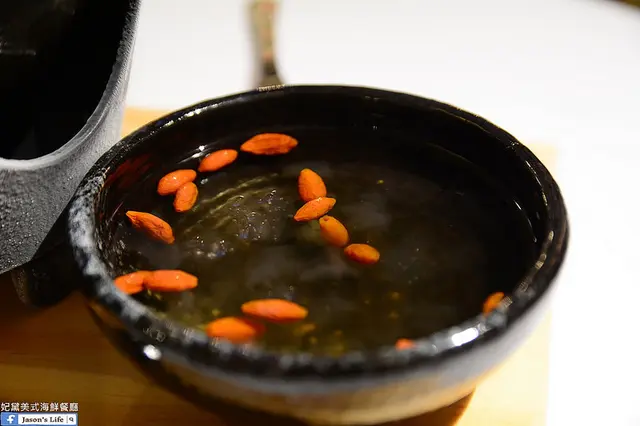 一旁的燕窩甜湯,透明狀的就是燕窩啦~搭配枸杞熬的甜湯