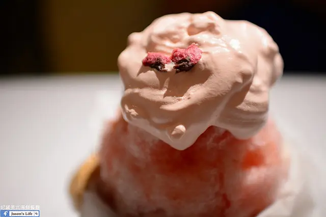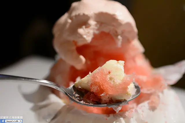 因為上層的挫冰有點結實,單獨吃冰和櫻花奶霜其實只有淡淡的微酸口感