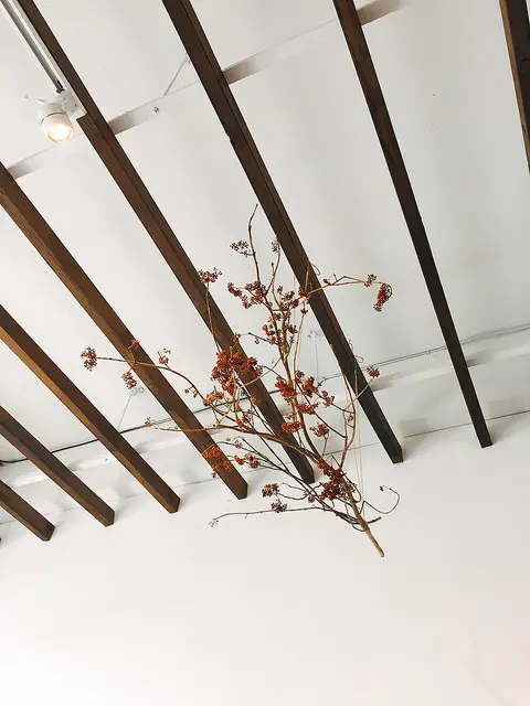 店門口以簡約的白色為主,放了一些聖誕紅花盆