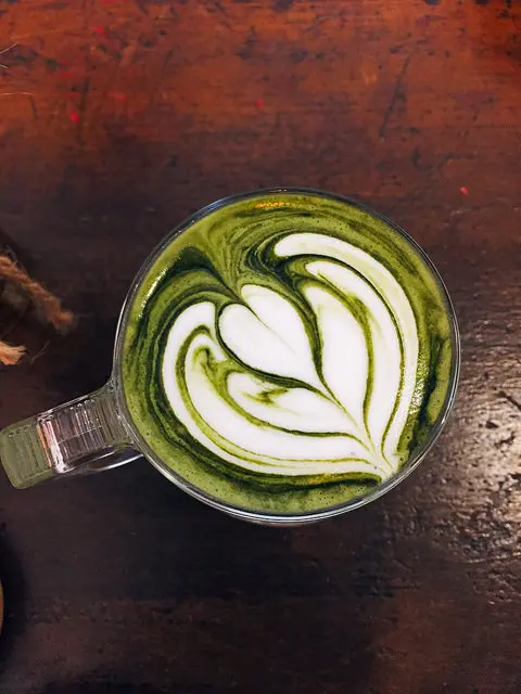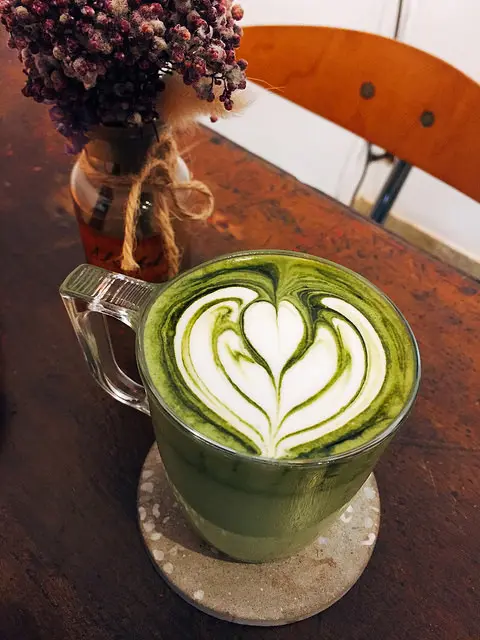 這上頭的愛心拉花超級美,抹茶的紋路很分明