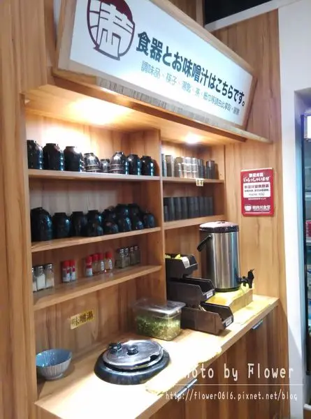 他們的麥茶與味噌湯、餐具都是採自助式