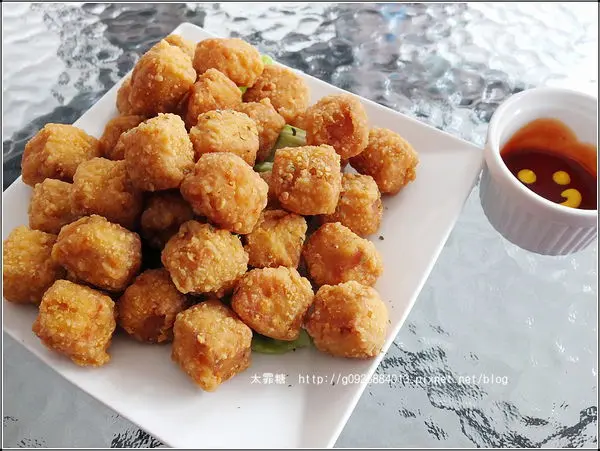 這一盤雞球雖然要$150元,但是量還挺多的,重點是好吃還有可愛的笑臉番茄醬