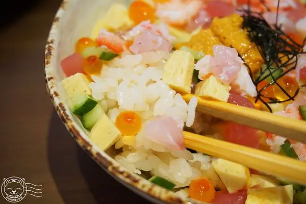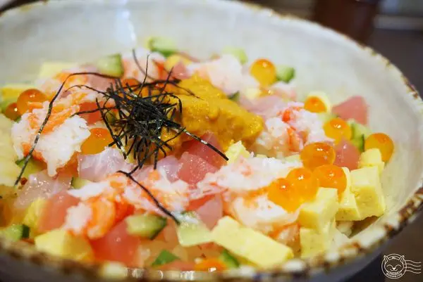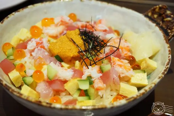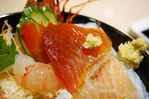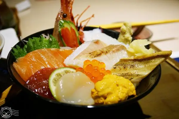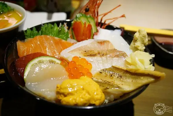 由7品魚、干貝、海膽、胭脂蝦組成的海鮮丼,分量不多,口味卻讓人意猶未盡,