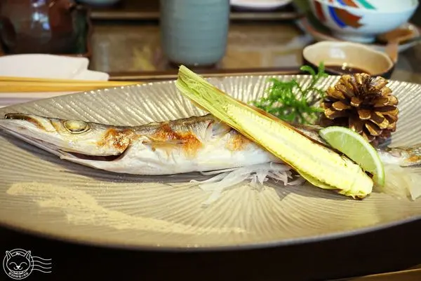 烤魚旁邊的玉米筍和醃白蘿蔔也超級好吃...阿克一直在該為什麼玉米筍只有半條~