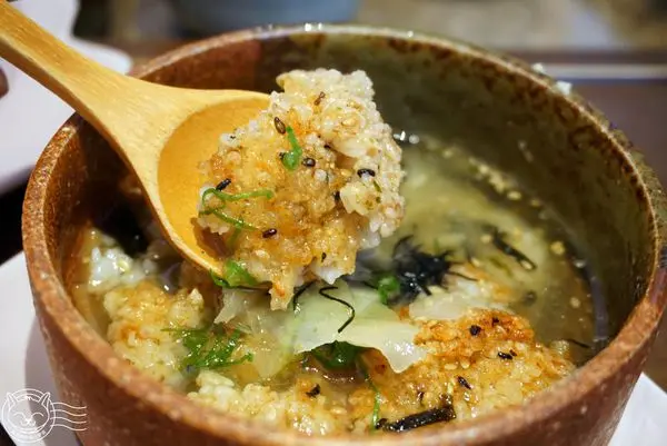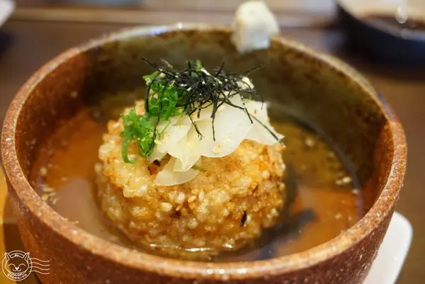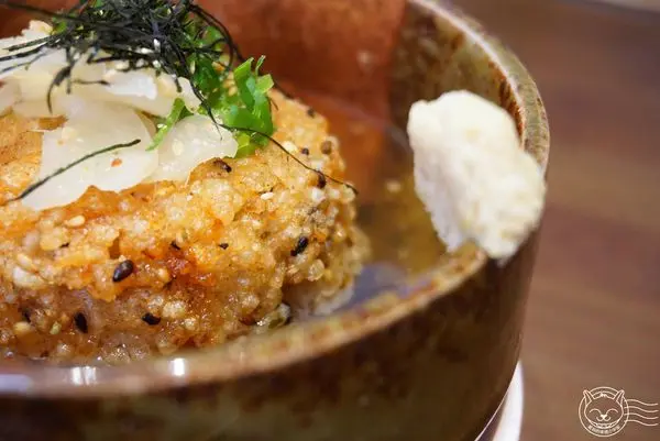看起來就很脆口的蟹膏飯糰泡在清澈的高湯裡,很像茶泡飯!