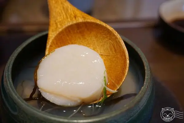 切成兩半的干貝外略熟內生,很軟嫩又好似品嘗得出紋理,鳩齁假!