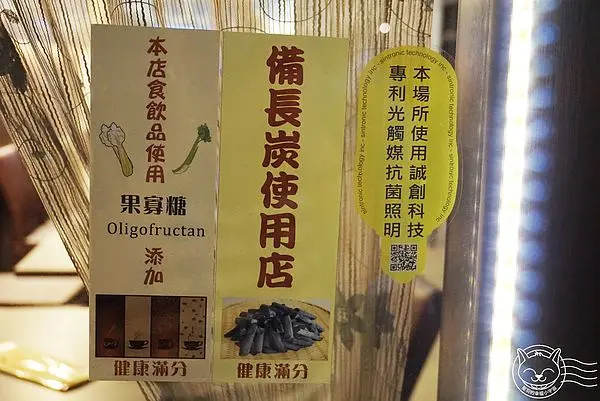 料理添加果寡糖,用備長炭過濾的水給客人喝,還有老闆特別跟星羽和阿克介紹的光觸媒抗菌照明,