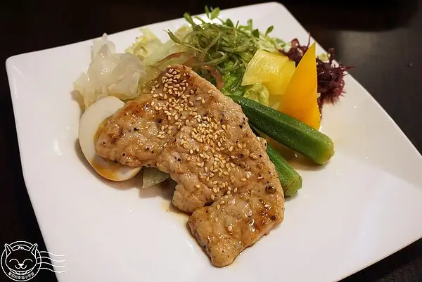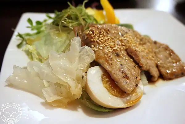 我們單點了一個烤肉蔬菜沙拉,份量還不少耶,有烤肉、生菜、秋葵、海藻和半熟蛋等~