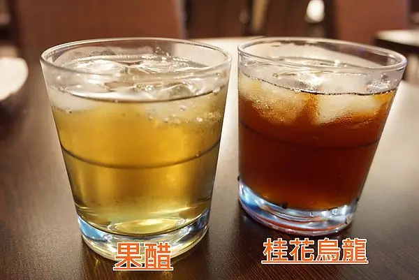 附餐飲料星羽點了果醋,阿克點了桂花烏龍,