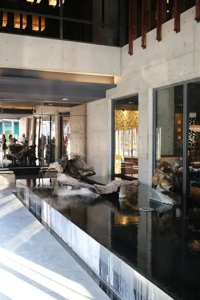 外頭一根大樹幹在水池中,這在台北看不到吧XD
