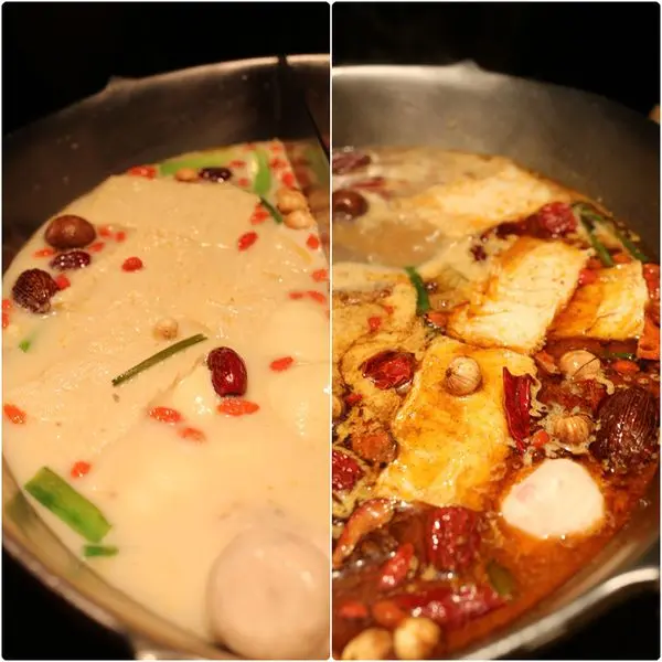 為了可以同時吃到冰淇淋豆腐鍋與長生辣香鍋,我們點了鴛鴦鍋,兩種都吃的到