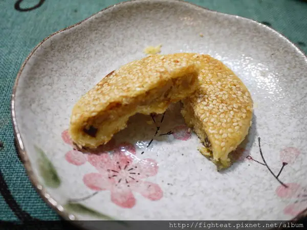 咬下隱約會咬到肉末及冬瓜顆粒,跟芝麻燒餅比起來,比較偏油一些