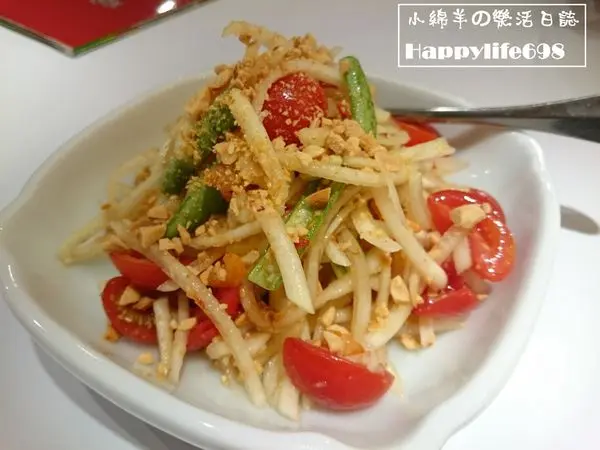 脆口的青木瓜絲拌入菜豆和小番茄,上頭灑上香氣十足的花生米,前幾口的味道是十分清