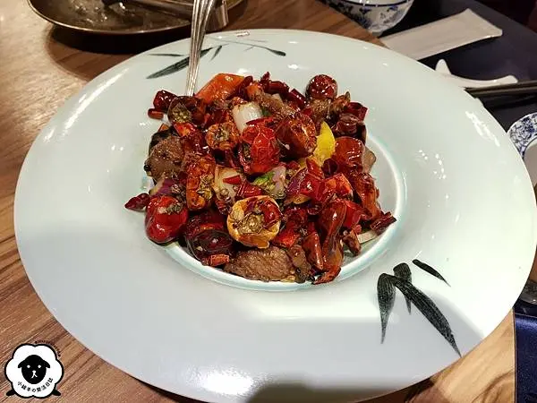 滿滿的花椒與乾辣椒視覺效果驚人,是開胃的辣度而且沒有麻痺舌頭的感覺,迷人的香氣讓人就連洋蔥都捨不得浪費。