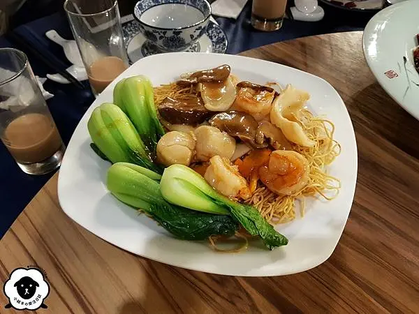 脆口的細麵淋上豐盛的海鮮燴料,有花枝、干貝和鮮蝦,表現算是中規中矩。