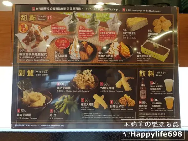 餐點除了可以在旋轉餐檯拿取,也可以透過平板點餐,品項超級多元,居然還有麵食可以選擇!