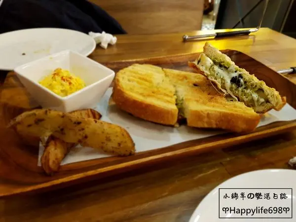 這款帕尼尼最讓人驚豔的地方在於甜梨,經過烘烤後反而更加juicy,而且甜味和青醬的羅勒味衝突間迸出一種難以言喻的新滋味,推薦給喜歡嘗鮮的朋友。