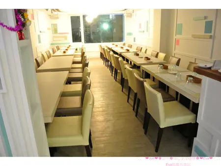 他們全店的佈置是用白色和天空藍去營造出來的! 在這種空間裡吃飯,會覺得漫步在雲端的感覺((因為藍天白雲,哈哈哈 店家也用了一些玩偶擺放,營造出溫馨的用餐氣氛!