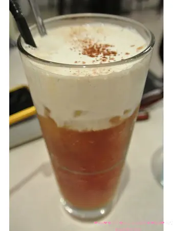 香蕉奶霜紅茶,130元!(是飯套餐附的飲品,我們有補差額30元) 這杯飲料太特別了! 他的做法其實很像綠蓋茶那樣,上面蓋了一層奶霜! 但綠蓋的那個,其實我覺得沒有很好喝,味道蠻怪的! 他們家的很特別,因為上面那層是香蕉奶霜耶! 是甜的,我個人覺得飲料就是要配甜的,來個鹹的讓人覺得頗怪! 而且~他們的香蕉奶霜裡不僅只有香蕉的味道,還可以吃到香蕉的果肉喲!  這杯我很喜歡!