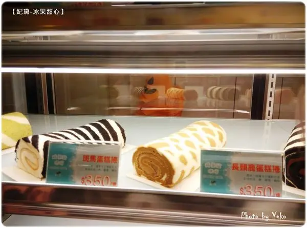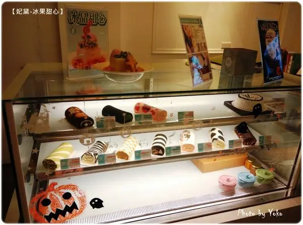 櫃台旁的冰箱櫃中擺滿了各式美味的蛋糕捲,