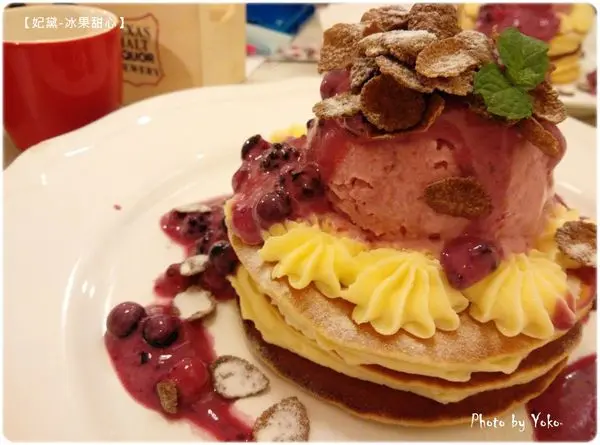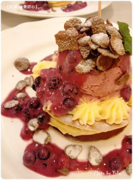 搭配酸甜的莓果優格與冰淇淋,吃起來非常順口不膩。