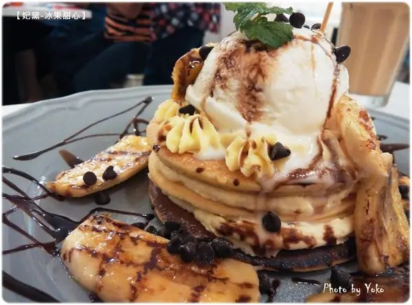 並且淋上不少巧克力醬與灑上些許巧克力豆,