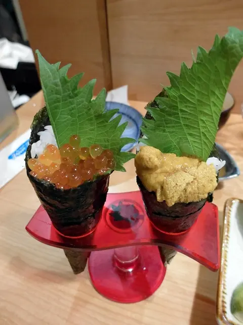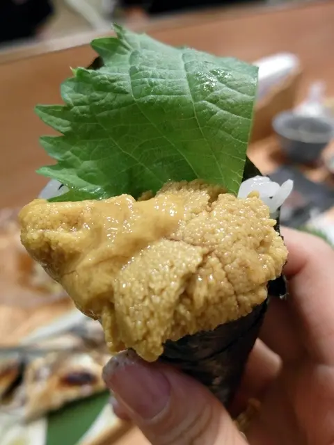 那個葉子味道很重 咬下去味道出來會蓋過海膽的味道