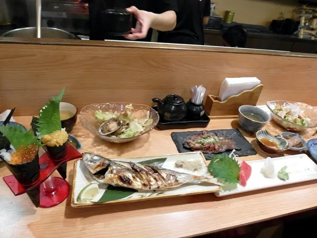 主廚依照每天食材的不同提供各式生魚片、沙拉、湯品、握壽司、手卷及烤物六道菜