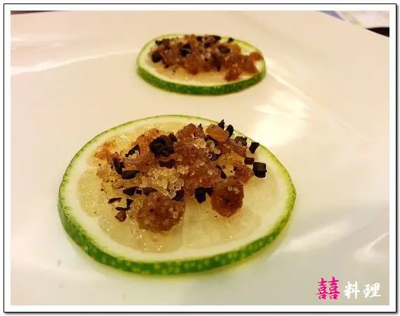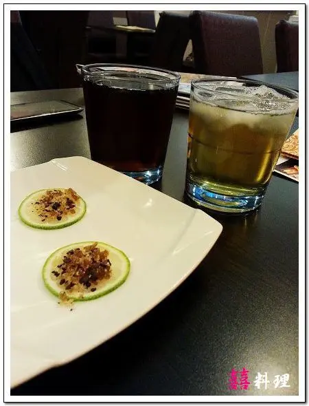 用餐前,店家會先端出二片新鮮現做的檸檬嚼咖啡