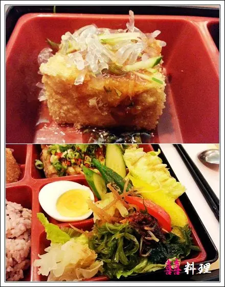 配菜有炸豆腐、都快滿出來的生菜沙拉、白木耳、珊瑚草
