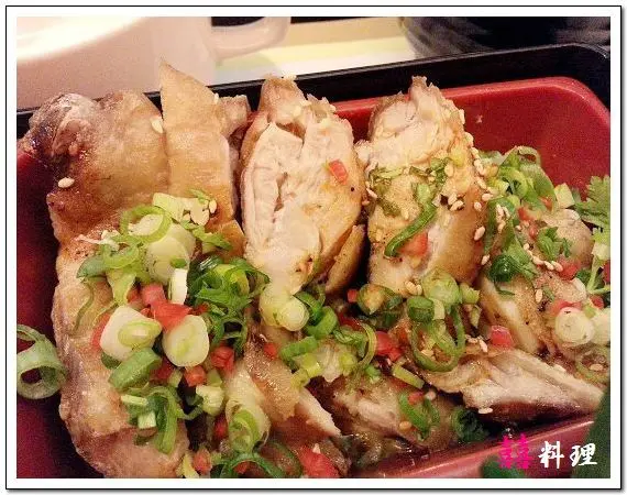 雞腿排去骨,外皮酥脆,雞腿肉也很鮮嫰..再淋上老闆特製的酸辣醬汁..