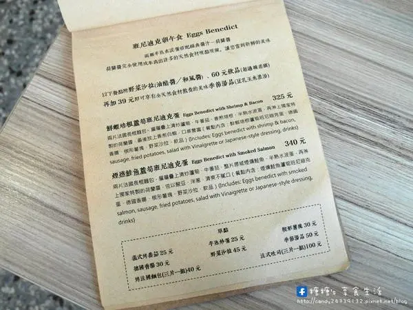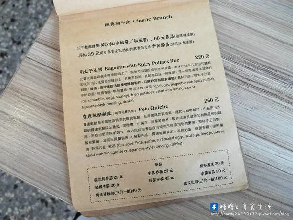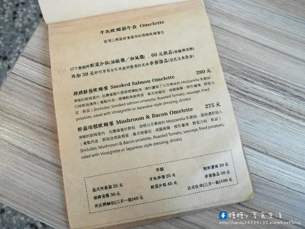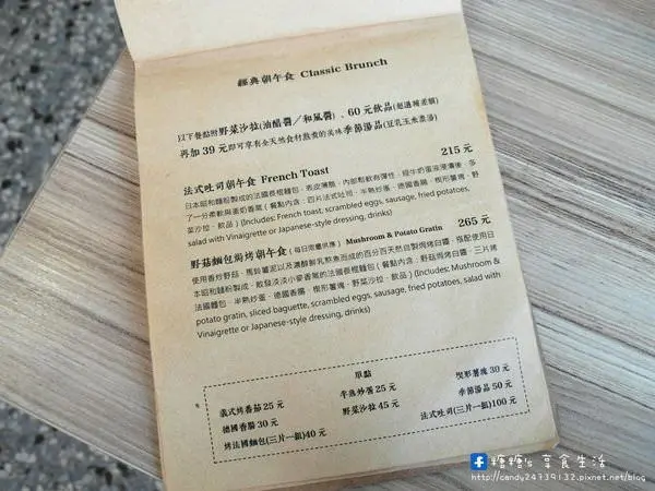餐點以早午餐為主,均附野菜沙拉及60元飲品,再加39元可享季節湯品唷