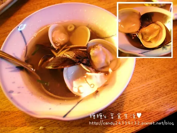 日式蛤蜊湯 90元 蛤蜊顆顆飽滿大顆,甘甜美味,份量十足,加入些許薑絲及蔥花,讓湯頭鮮甜又順口