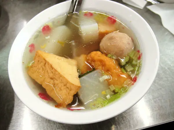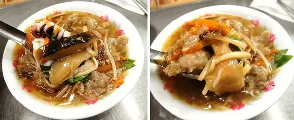 綜合羹湯(小) 50元 別看這碗羹湯小小一碗,裡面的料可是份量十足呢裡頭有魷魚、肉羹、花枝、蝦仁及滿滿的筍絲和香菇用料非常實在,每一口都吃的好滿足押