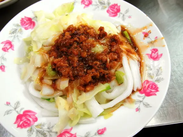 板條(小) 35元 滑溜溜的板條,淋上香氣十足的肉燥,在加上香甜的高麗菜吃起來帶些許的甜味及嚼勁,讓人越吃越香,越吃越美味