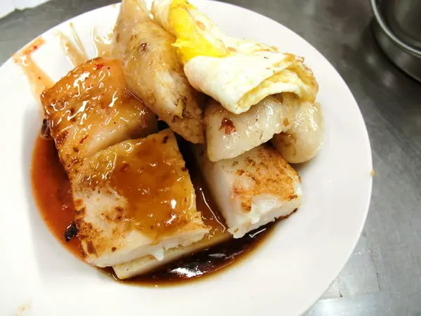菜頭粿+米腸+蛋(芋) 55元 外面大排長龍的菜頭粿,在這裡也可以吃的到兩塊煎至微焦的菜頭粿,搭配糯米腸及半熟的荷包蛋,看似簡單,吃起來卻非常美味
