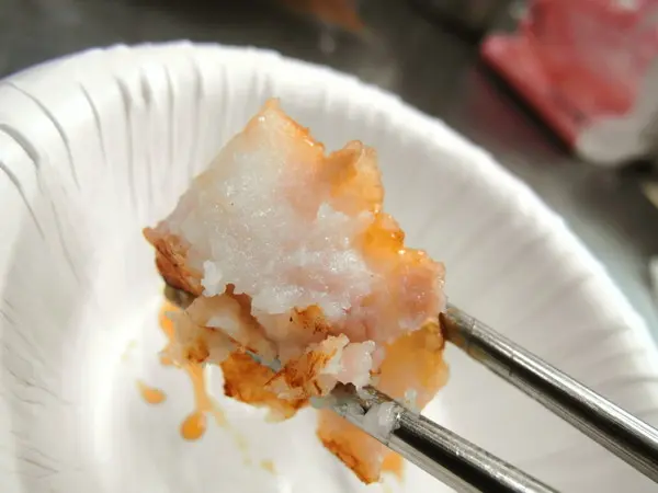 菜頭粿裡還藏了芋頭的顆粒了呢,可惜不是每一塊都有