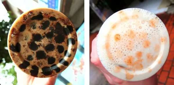 郭姐的黑糖波霸色澤有比較深一點,將波霸搖一搖,底層還看的到波霸留下來痕跡