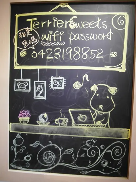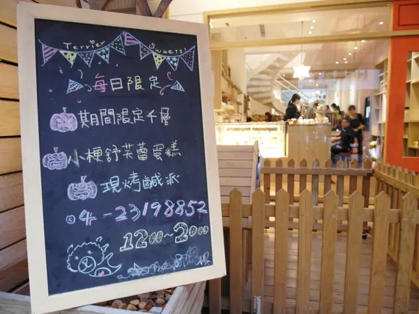 外頭小黑板上寫著每日限定的甜點及招牌甜點唷