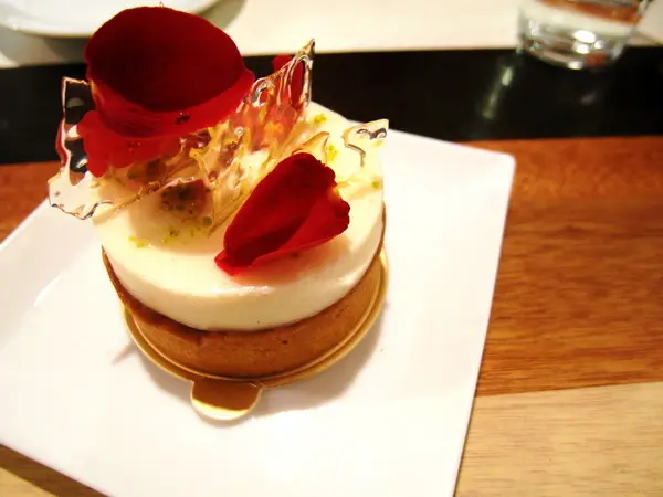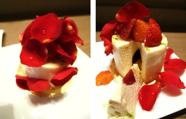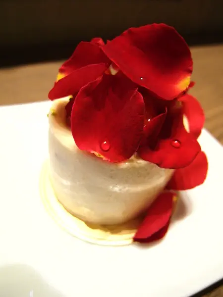 玫瑰花片、白巧克力荔枝奶凍、覆盆子奶酪