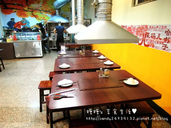 如果切下來的肉太大塊了,可以用簡單把肉剪成小塊一點,話說剪刀比刀子還要好用呢 桌上都有附上一罐孜然粉及花椒鹽,可以依個人喜愛的風味作調配老闆說切下來的羊肉塊也可以灑上些許的孜然粉再回烤,吃起來會更香唷