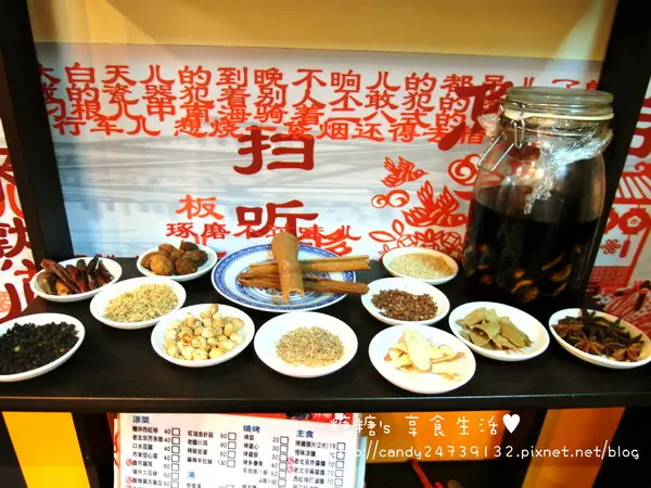 店家將使用到的調味食材擺出來,老闆娘說這邊的食材在北京可是家常必備之物呢 Menu