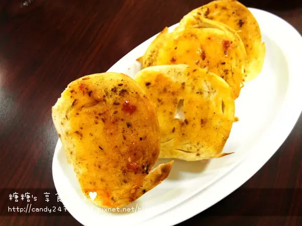 烤饅頭片 先將饅頭表面刷上一層羊油,接著灑上孜然粉,最後再抹上一層甜辣醬下去烘烤鹹香味中帶著微辣微香的香氣,口感紮實,吸足醬汁,讓蠻頭吃起來不會太乾或太硬