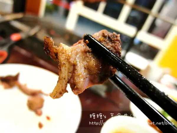 熱經過老闆切塊回烤的羊肉變得更香,不會因為回烤而流失湯汁,咬下去一樣超juicy的羊肉塊的口感也比剛剛劃成片狀的羊肉來的軟嫩,且騷味十足,整個就是糖糖的菜