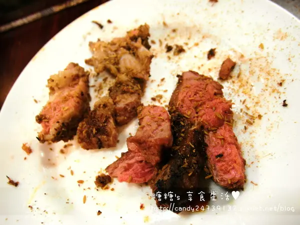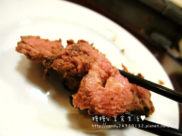 往裡面一點的肉質呈現淡粉紅的色澤,熟度大約是6-7分熟老闆說這樣粉嫩的顏色是肉質最軟嫩的地方,如果不敢吃這麼紅的話可以再回烤一下