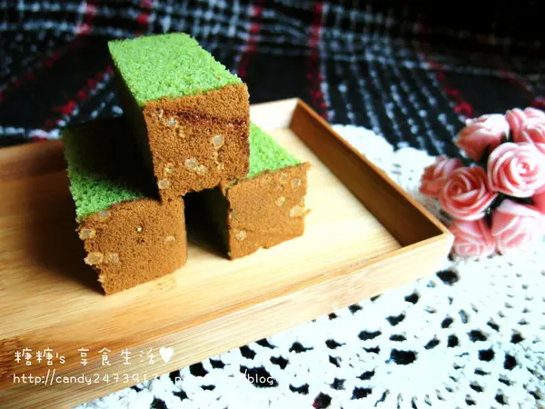 抹茶卡斯提拉 結合日本進口抹茶粉手工製作,經火侯、時間與水份的掌控,使用熬煮的技巧與一般直接添加抹茶粉的方式不同,充份表現出抹茶的濃郁香氣與風味結合著雞蛋與糖發酵如蜜般的細緻口感,咬一口含蘊在嘴裡,完美融抹茶香的沁人茶香