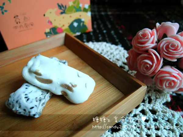 牛軋糖 成分:麥芽、細砂糖、黑芝麻、花生、奶油、奶粉、蛋白、鹽 因為天氣太熱導致牛軋糖有些變形,建議可以放置冷藏保存,冰涼口感也別有一番風味唷 芝麻牛軋糖 一般最常吃到的牛軋糖添加的堅果幾乎都是杏仁或花生,結合芝麻倒是很少看到 打開包裝時就聞到一股芝麻香味,入口後香氣更是濃郁,不僅品嘗的到芝麻香外還吃的到芝麻顆粒,交織著濃濃的牛奶香氣,甜而不膩的滋味,令人念念不忘