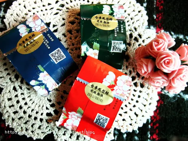 鳳梨酥共有紅、藍、綠三款顏色,口感都是一樣的,包裝精緻都非常有質感呢