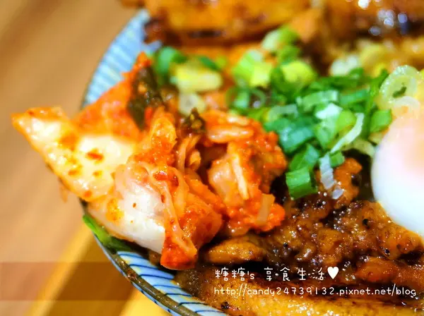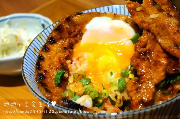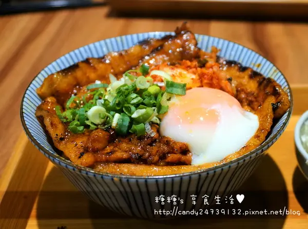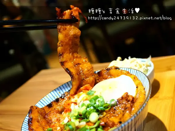 一上桌立刻就被丼飯上頭的肉片給吸引住了,採用厚切豚肉,加上特製韓式辣醬醃製而成燒烤後帶出特別油脂香味,搭配泡菜、溫泉蛋及些許蔥花提味,風味更佳唷